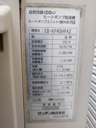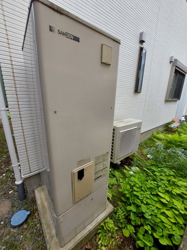 松江市朝日町 サンデン自然冷媒CO2ヒートポンプ給湯機ヒートポンプユニットEB-KP45HPA2→パナソニック家庭用ヒートポンプ給湯機ヒートポンプユニットHE-PLS45L 貯湯ユニットHE-LS37LQ エコキュート交換工事