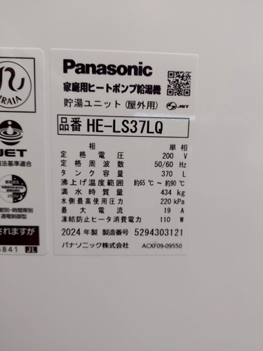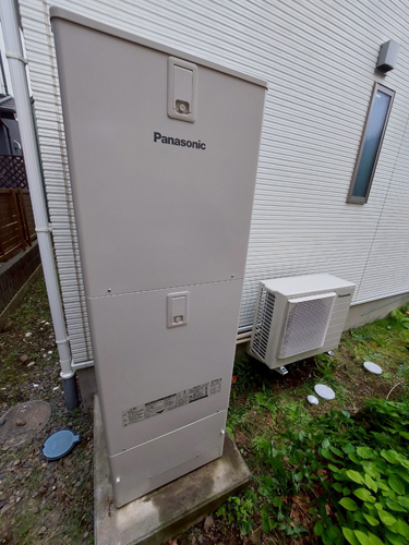 松江市朝日町 パナソニック家庭用ヒートポンプ給湯機ヒートポンプユニットHE-PLS45L 貯湯ユニットHE-LS37LQ エコキュート交換工事