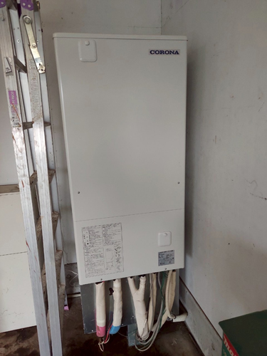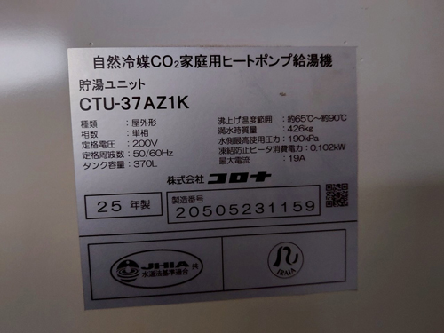 出雲市今市町 コロナ自然冷媒CO2家庭用ヒートポンプ給湯機貯湯ユニットCTU-37AZ1K、ヒートポンプユニットCHP-DZ451K エコキュート交換工事