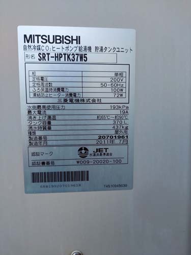 益田市駅前町 三菱電機自然冷媒CO2ヒートポンプ給湯機 貯湯タンクユニットSRT-HPTK37W5→パナソニック家庭用ヒートポンプ給湯機 ヒートポンプユニットHE-PLS45L エコキュート交換工事