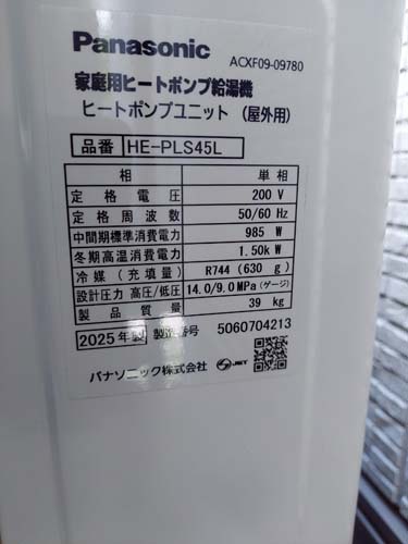 益田市駅前町 パナソニック家庭用ヒートポンプ給湯機 ヒートポンプユニットHE-PLS45L エコキュート交換工事